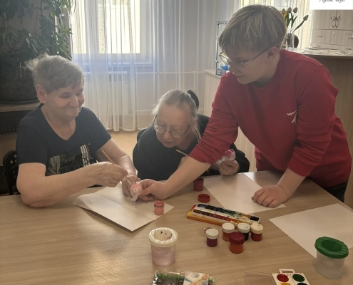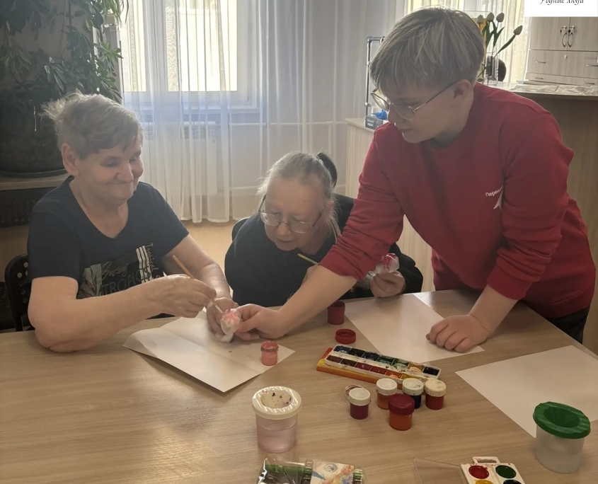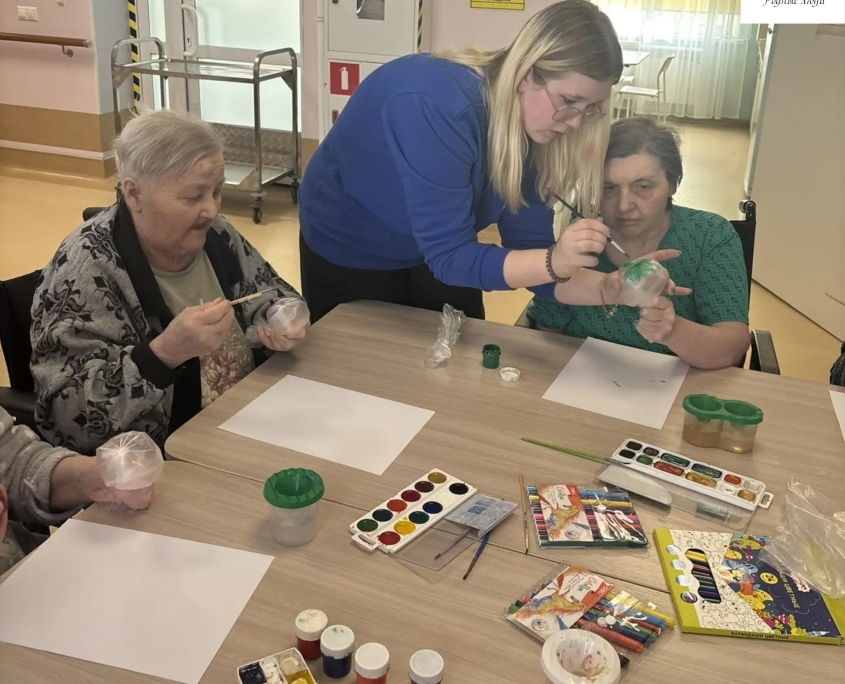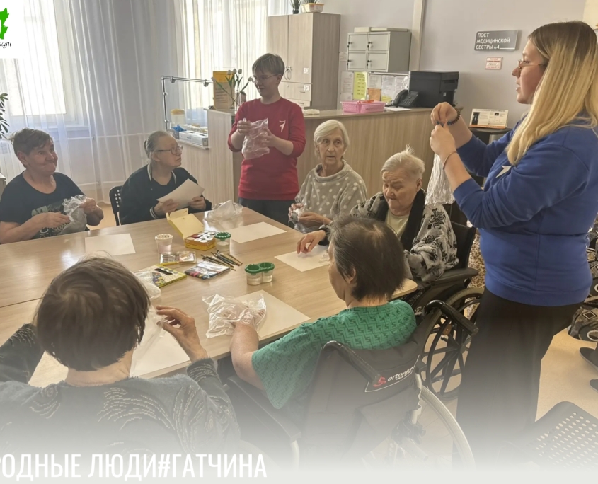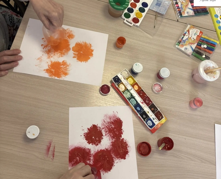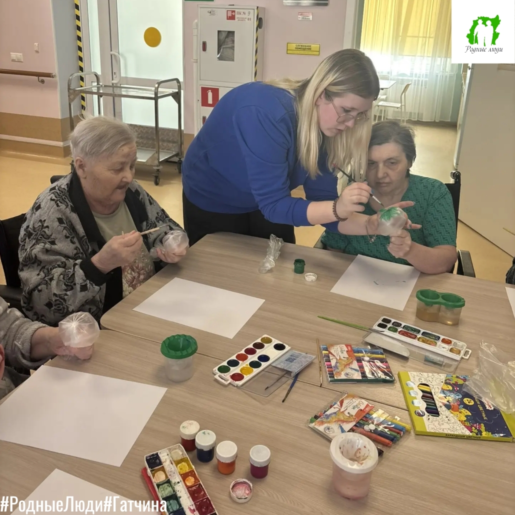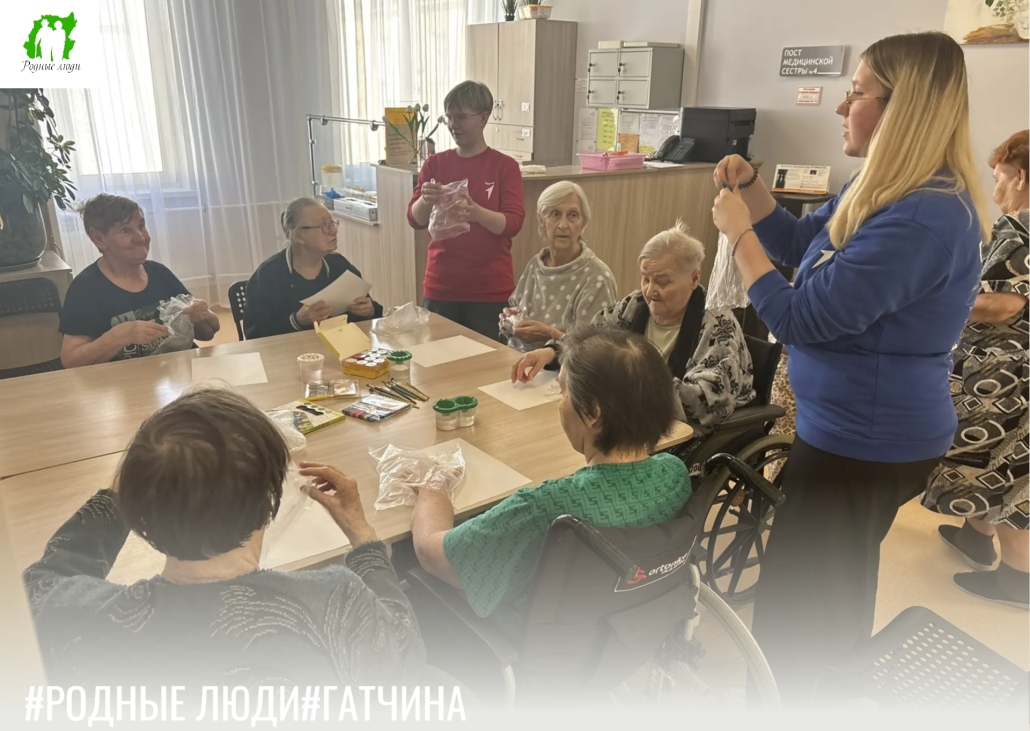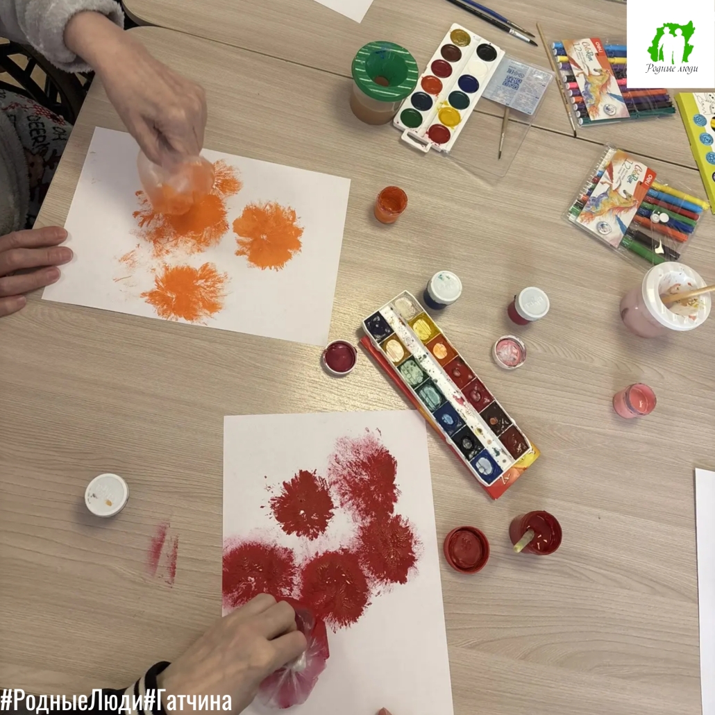 20 марта в «Родных людях» случилось настоящее арт-приключение! К нам пришли студенты Гатчинского педагогического колледжа и провели для проживающих необычное занятие — рисование пакетами.